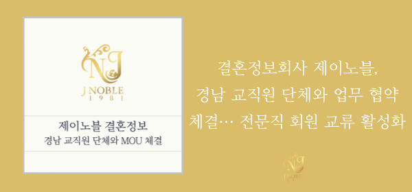 상류층결혼정보회사 제이노블이 경남 교직원 단체와 업무 협약(MOU)을 체결하고, 경상남도 지역 교사들을 대상으로 차별화된 결혼서비스를 지원한다고 15일 밝혔다.